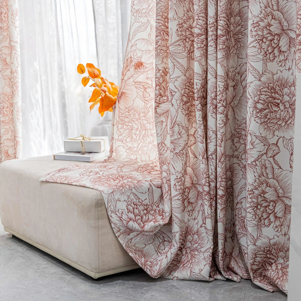 The Laurel Vintage Peony curtains paint your space with delicate terracotta sketches dancing across a pristine cream backdrop.
