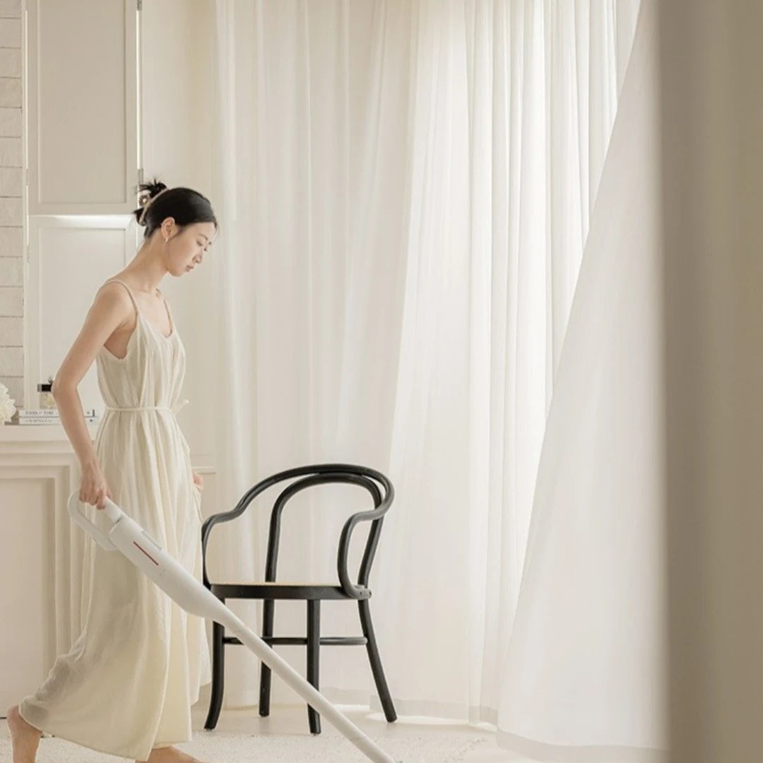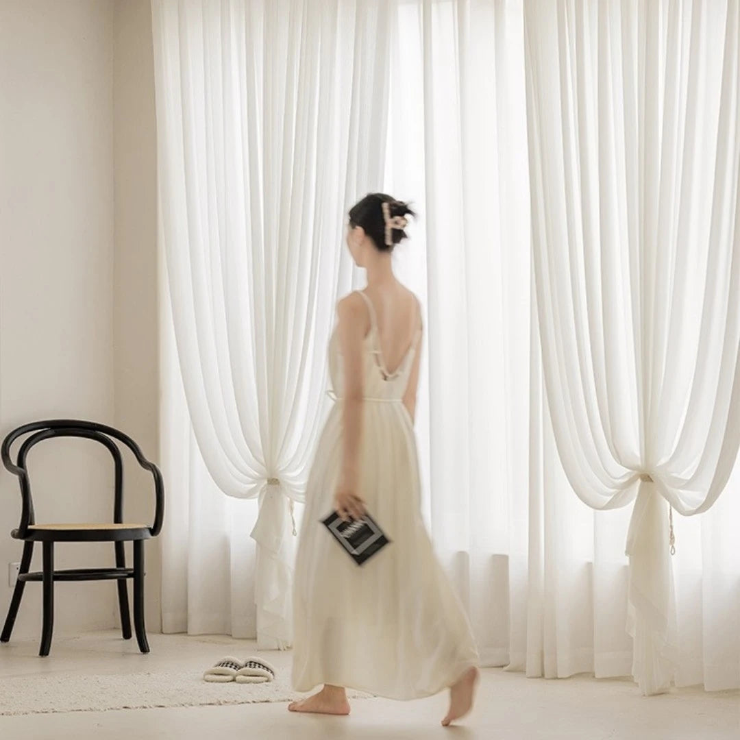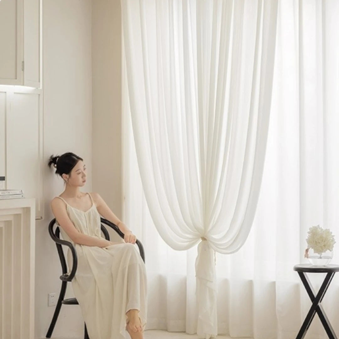 Premium gauze fabric flows gracefully from ceiling to floor, turning ordinary windows into stunning design elements.