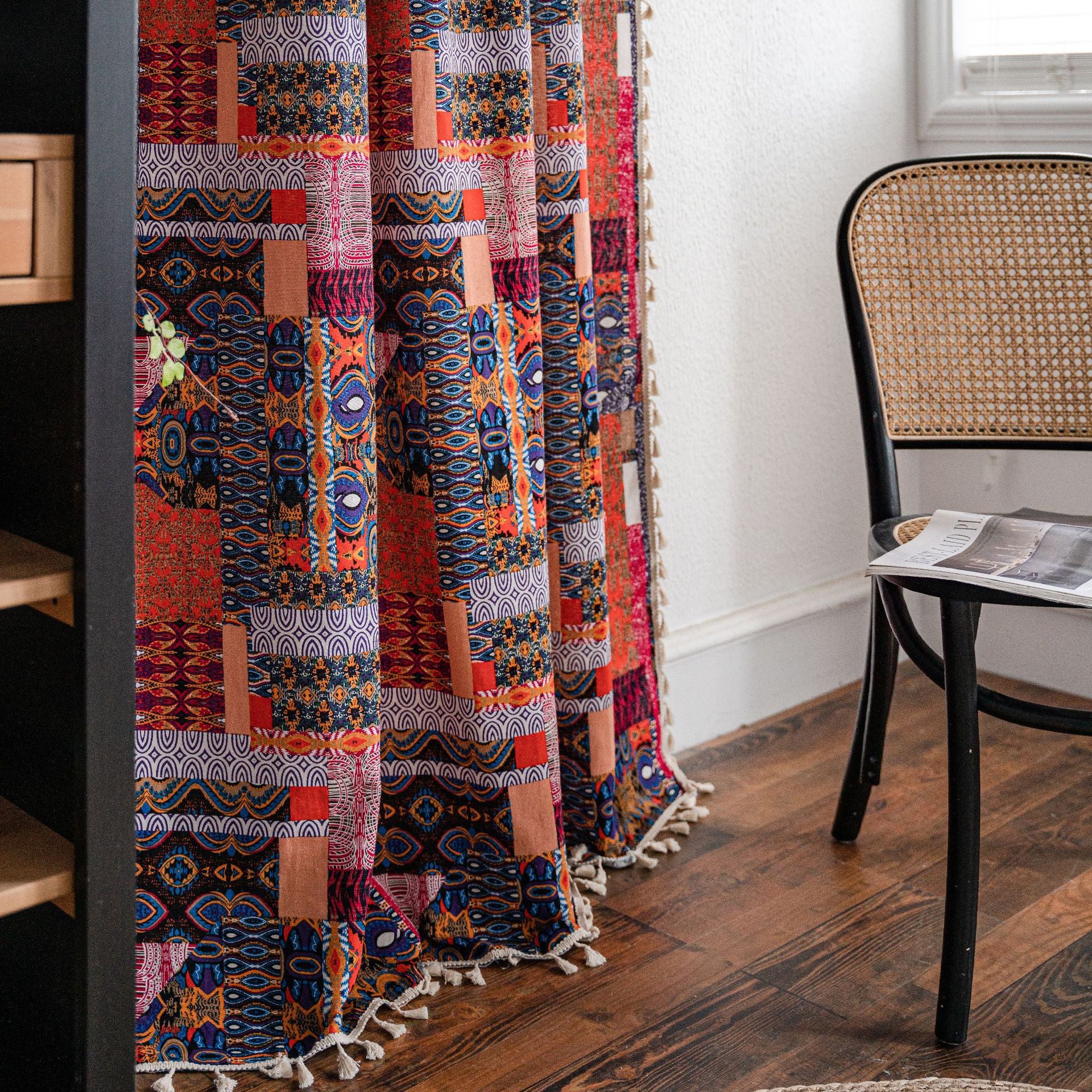 Ivory tassels adorn both sides and the bottom, augmenting the bohemian vibe of these curtains.
