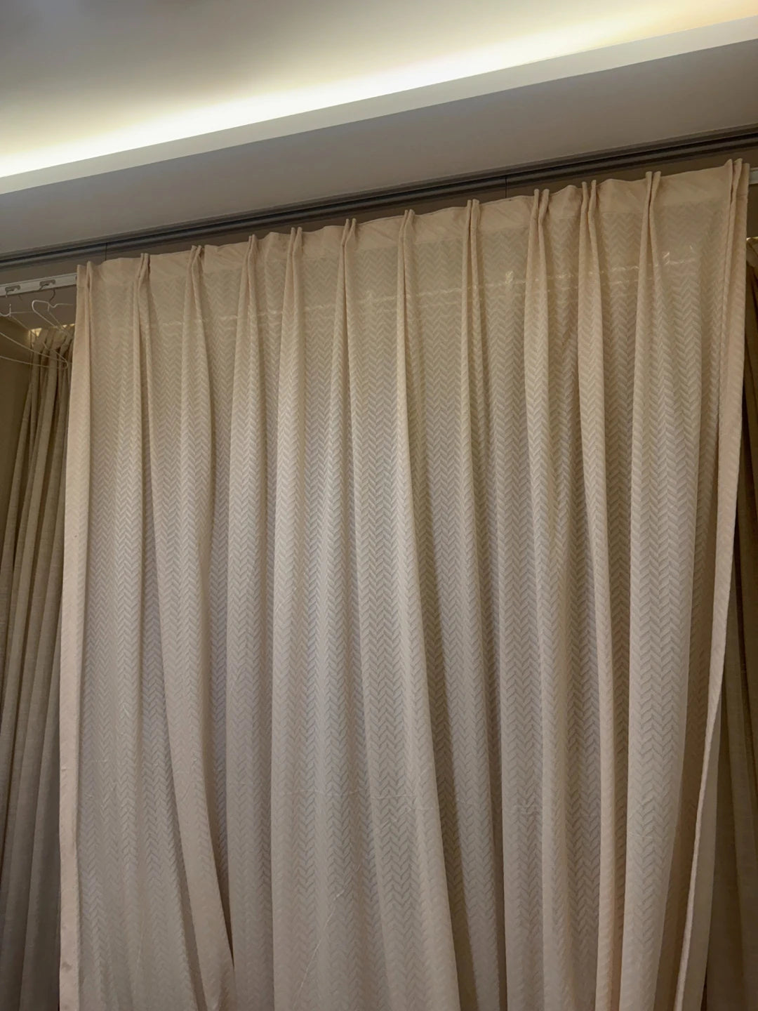 Except for linen curtains, we use high-temperature setting for all curtains. Our Memory Shape Training technology helps curtains hang straight with beautiful folds. This prevents flaring at the bottom, unlike regular curtains.