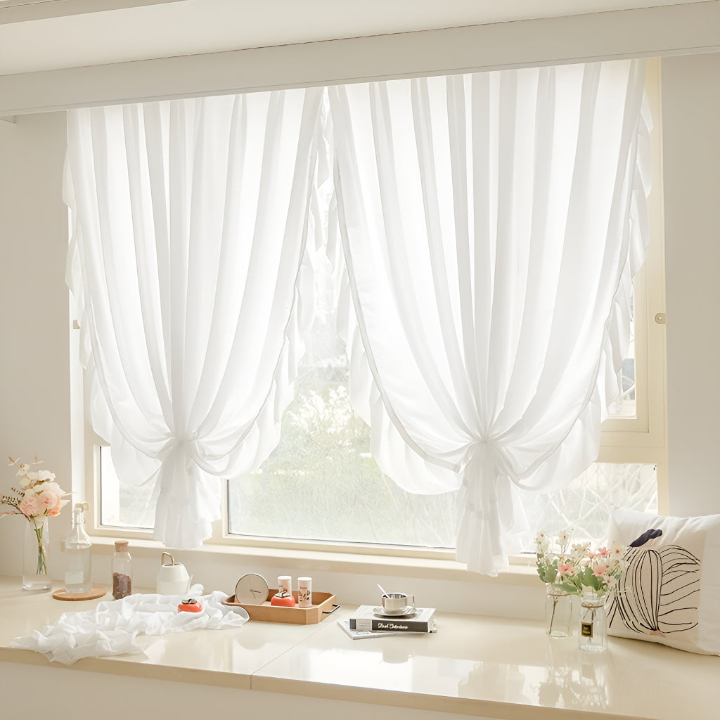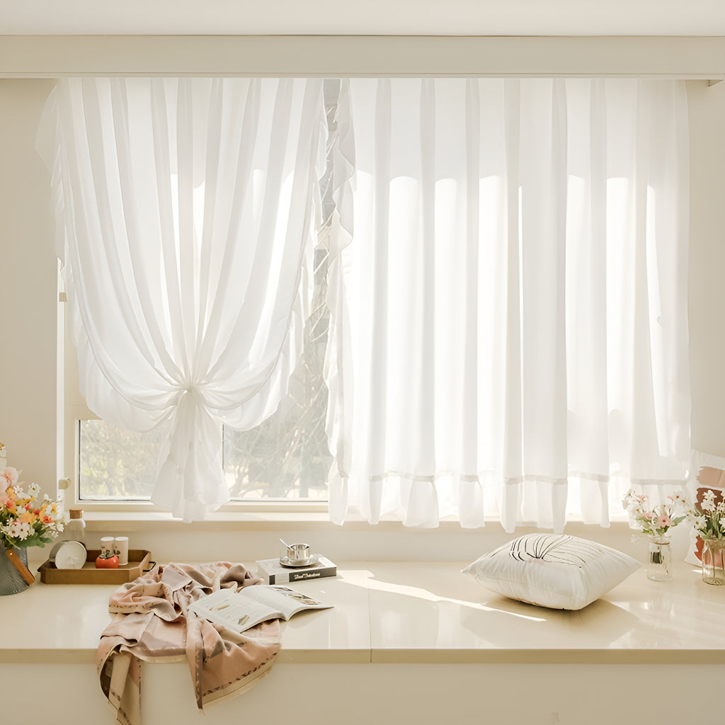 These sheer ivory curtains provide a soft, pure, and romantic ambiance to any room, making them the perfect addition to bedrooms, living rooms, and bay windows.