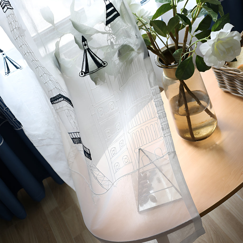 This dual-layer design boasts a white gauze layer teeming with exquisite embroidery, adding a touch of elegance and sophistication. Whether it's for a bedroom or living room, this curtain instantly adds a touch of wonder and excitement.