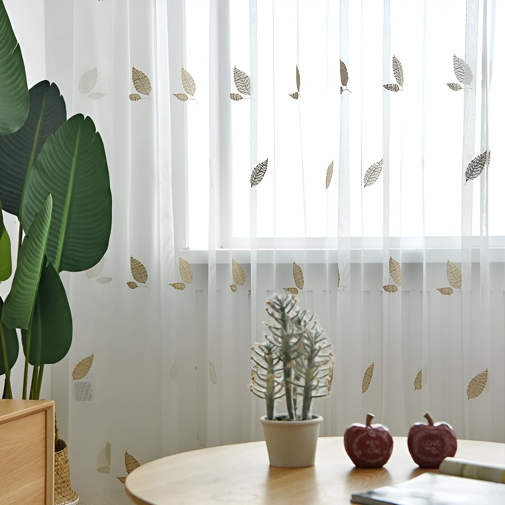 • Product: Kylah Sheer Custom Curtain with Leaf Embroidery