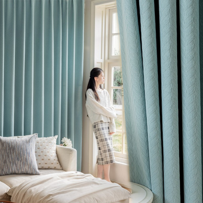 Himmelblauer Chenille Jacquard Verdunkelungs-Thermovorhang nach Maß