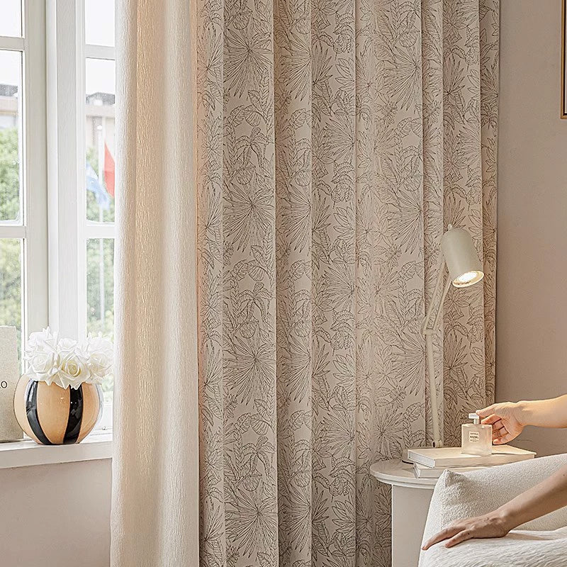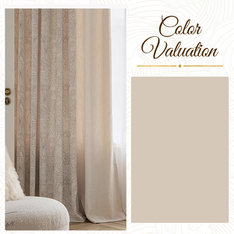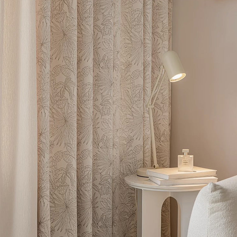 Design: Patchwork, ein einfarbiges cremefarbenes Paneel, ein cremefarbenes Paneel mit botanischem Druck. Der einfarbige cremefarbene Teil (ohne Muster) wird etwa 12 Zoll breit sein, unabhängig von der Gesamtbreite Ihres Vorhangs.