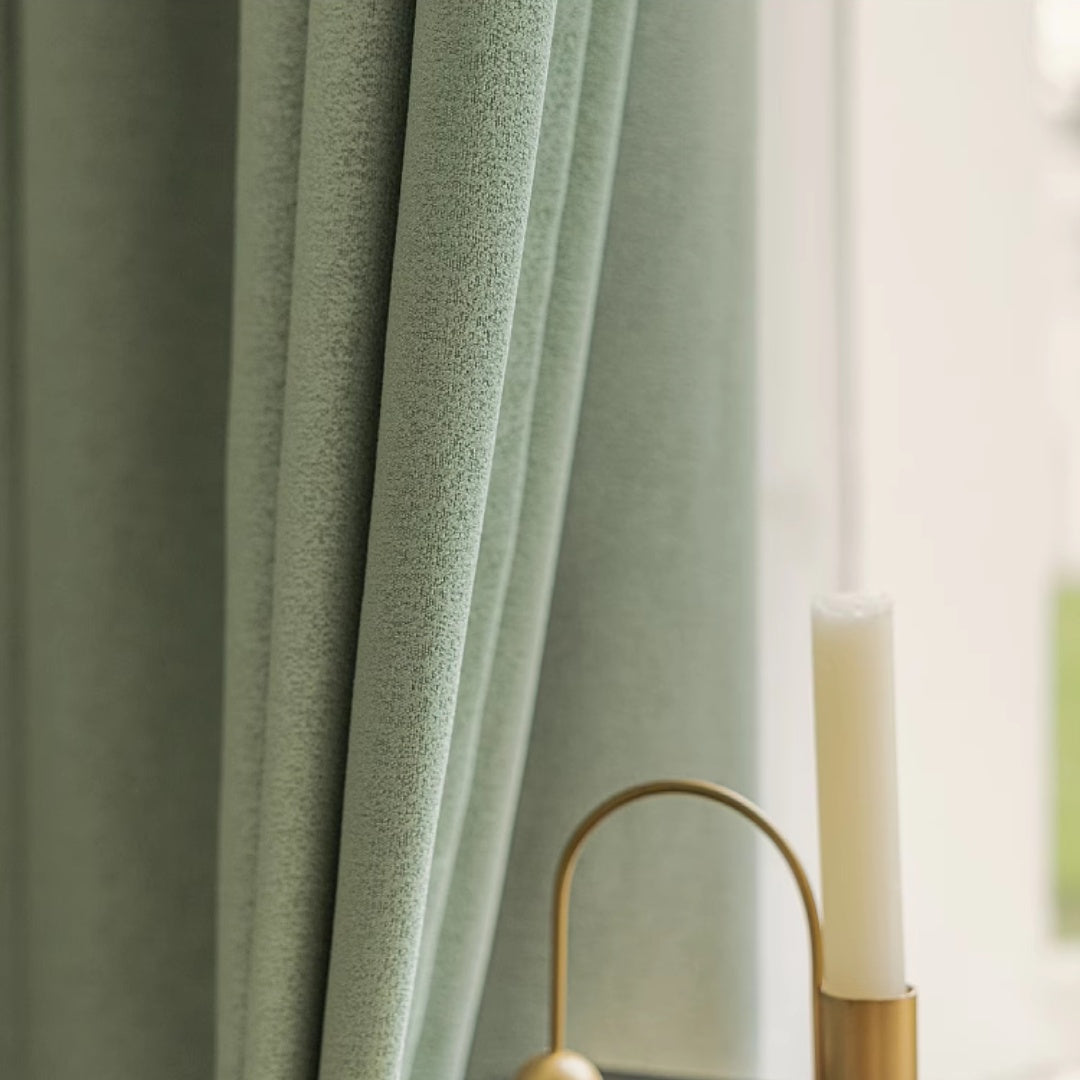 Gefertigt aus plüschigem, weichem, umweltfreundlichem Polyestergewebe mit einem Gewicht von ca. 1300g/㎡ bieten diese Vorhänge 90 % Verdunkelung, um Ihren Raum dunkel und ruhig zu halten. 100 % Verdunkelungsvorhang optional.