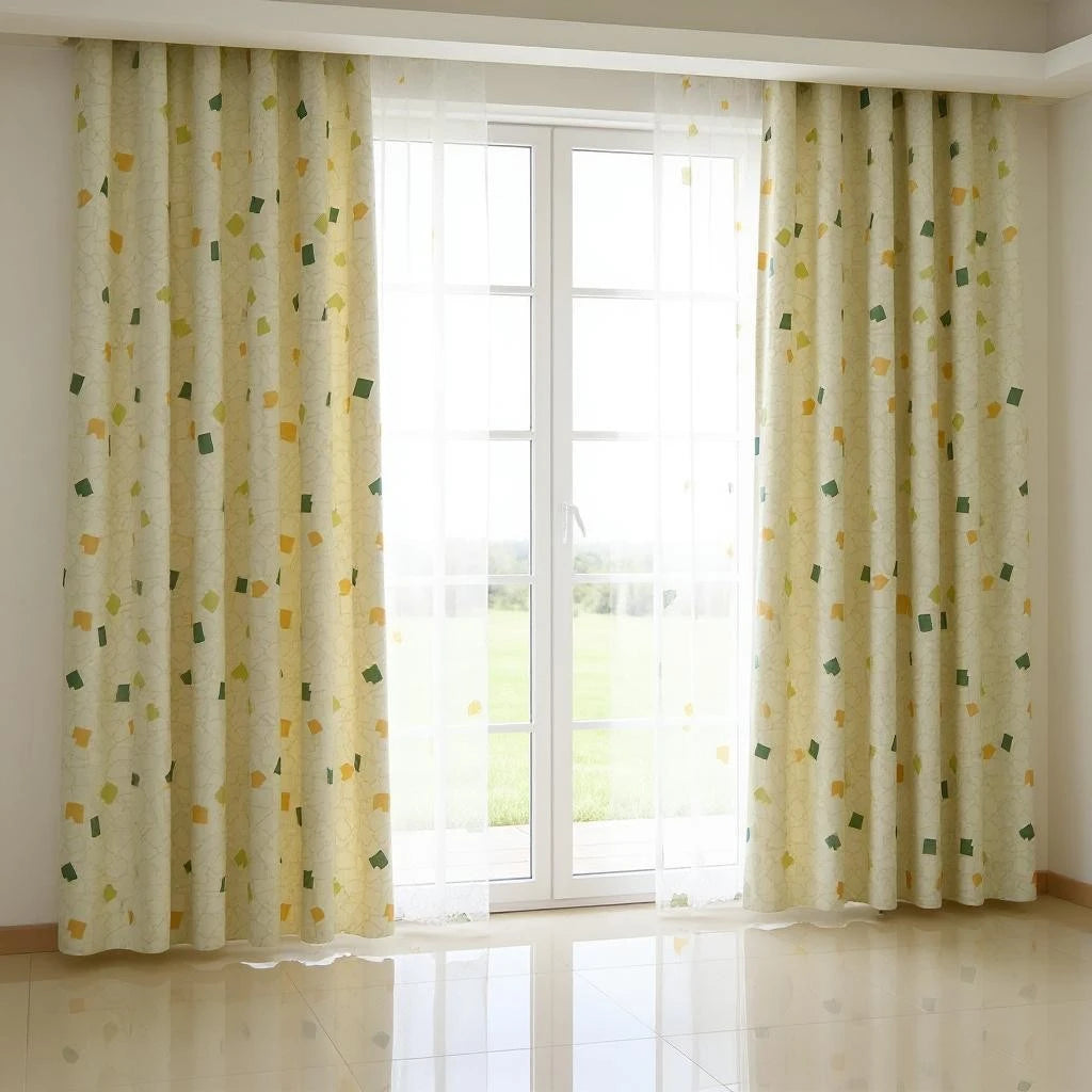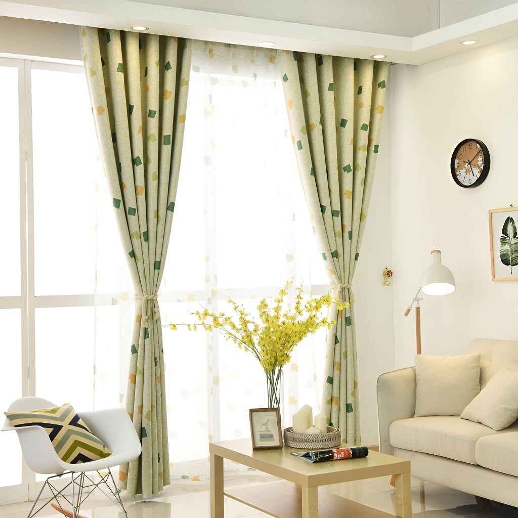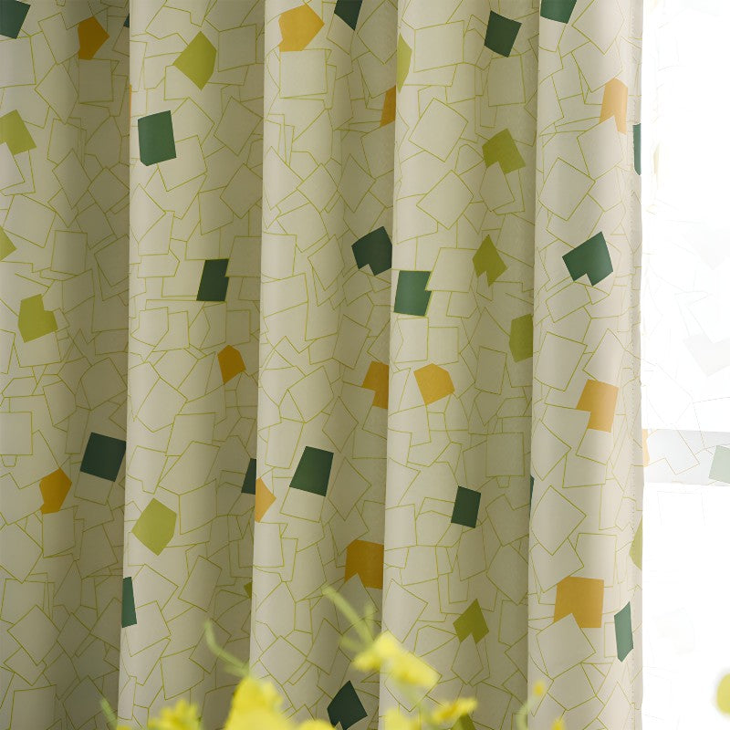 Inyecta una vibra fresca y moderna en tu dormitorio, sala de estar o estudio con nuestra Cortina Personalizada de Estampado Geométrico Alejandra.