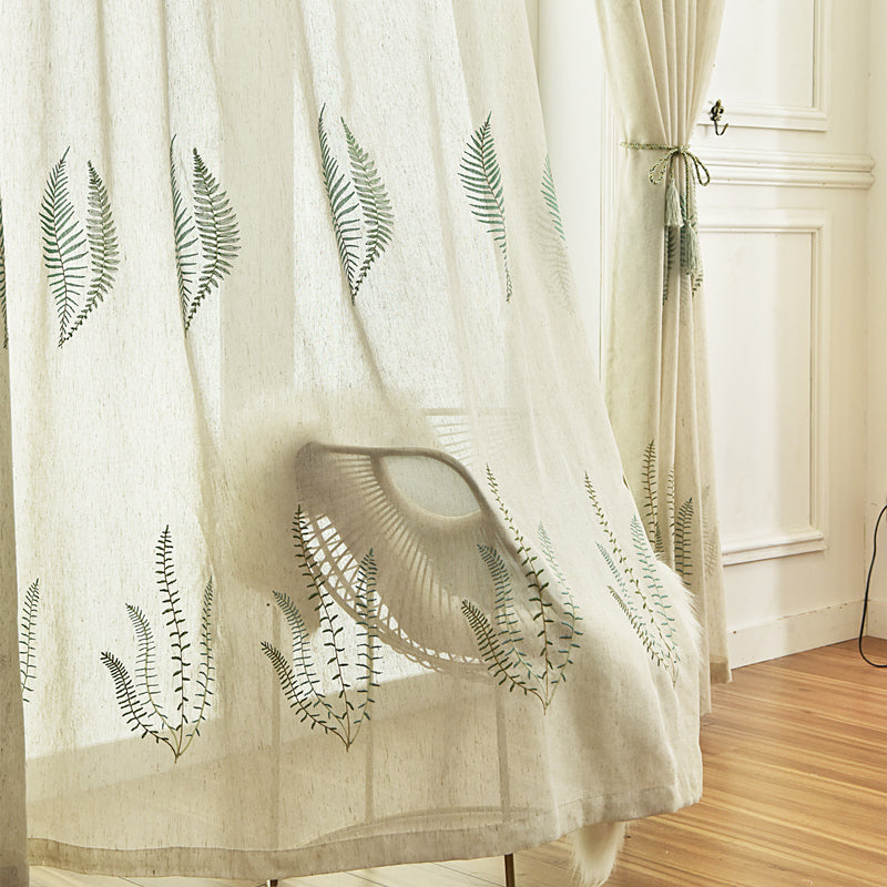 Ajoutez une touche de charme campagnard à votre espace avec le rideau sur mesure Mae Ivory Sheer. Sa couleur ivoire élégante et son motif complexe de tricot de feuille de fougère dégagent une beauté naturelle et une sérénité, créant une ambiance paisible dans n'importe quelle pièce.