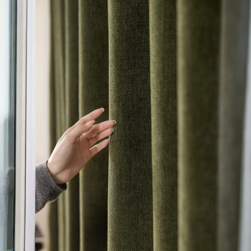 Sublimez votre espace de vie avec notre rideau personnalisé Ruby Chenille Vert Occultant Insonorisant Thermique.