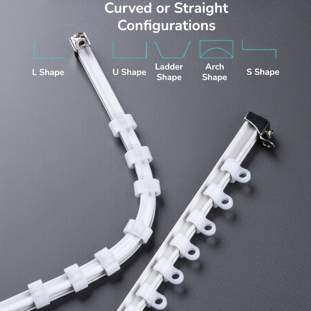 Questa guida per tende flessibile si piega a mano per adattarsi a qualsiasi forma di finestra tu abbia, oppure usala come guida dritta per installazioni di finestre standard.