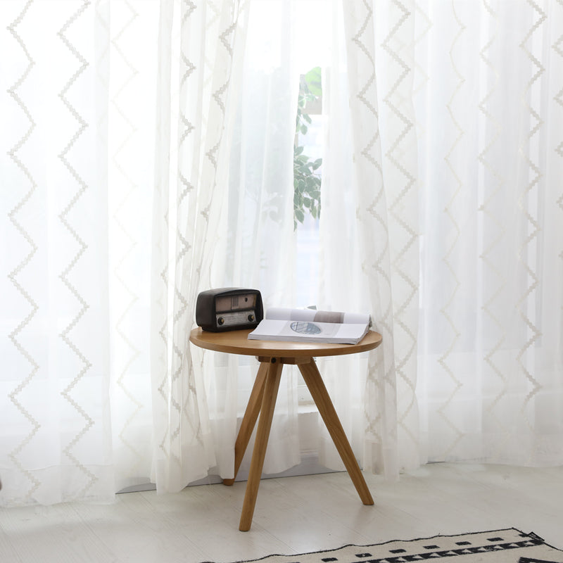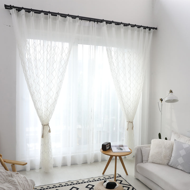 このエレガントな白いガーゼシアーカーテンは、繊細なレースの幾何学的ストライプラインパターンを特徴とし、寝室、リビングルーム、バルコニー、またはベイウィンドウに洗練された魅力と上品さを加えます。空間を簡単に引き立て、時代を超えた美しさと優雅さをもたらします。