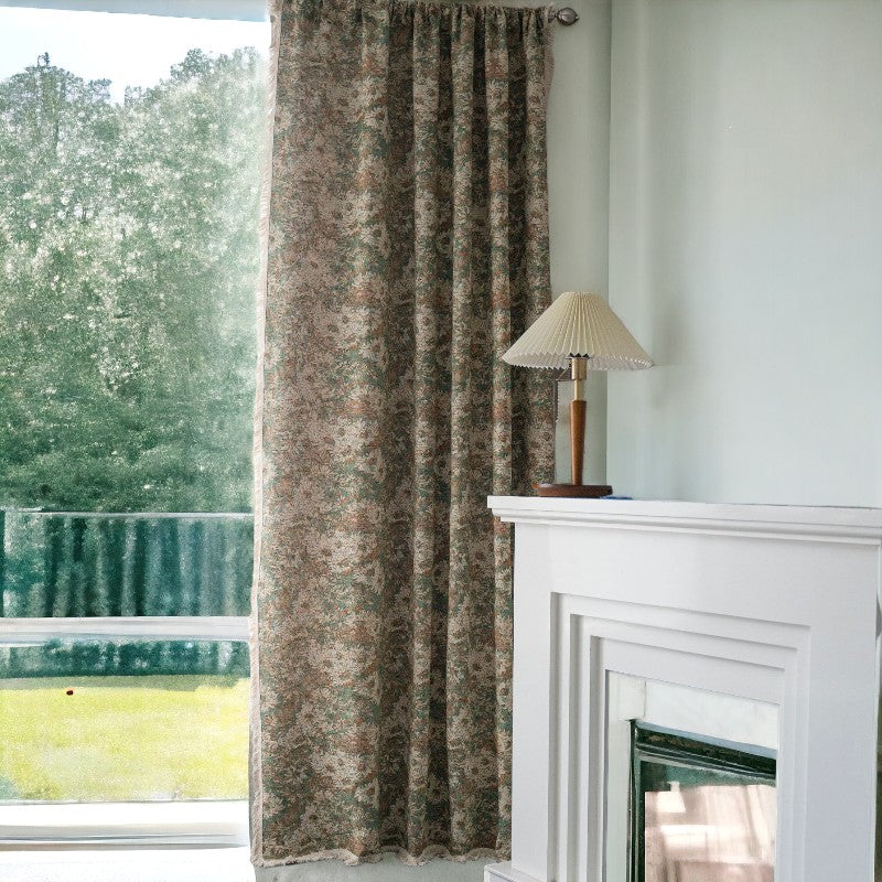 アイボリーのタッセルの洗練さと相まって、これらのカーテンは芸術と自然への愛をスタイリッシュに表現しています。