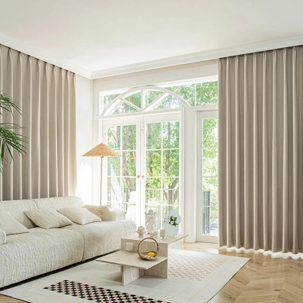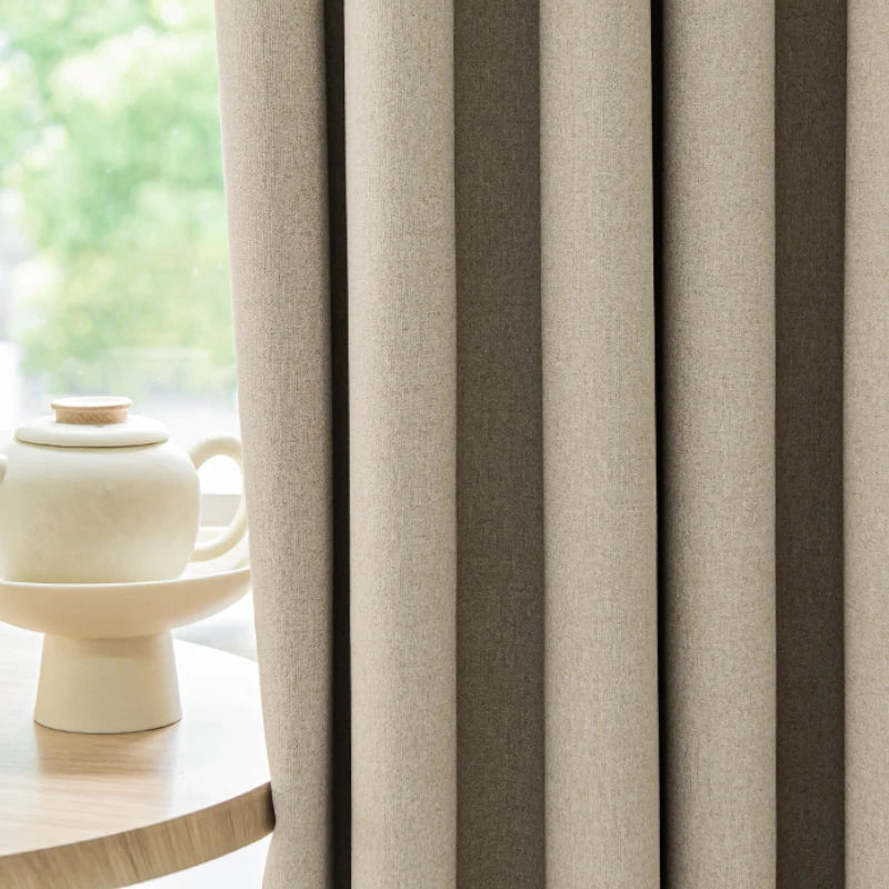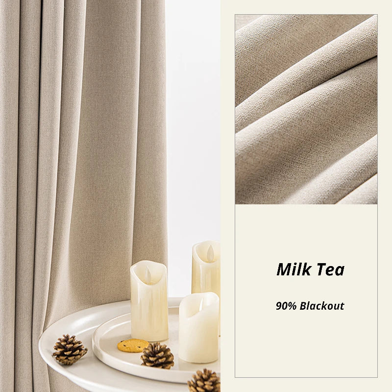 シンプルなデザインで幅広いインテリアスタイルにマッチする、ソリッドミルクティーカラーのカーテンでお部屋の装飾を格上げしましょう。