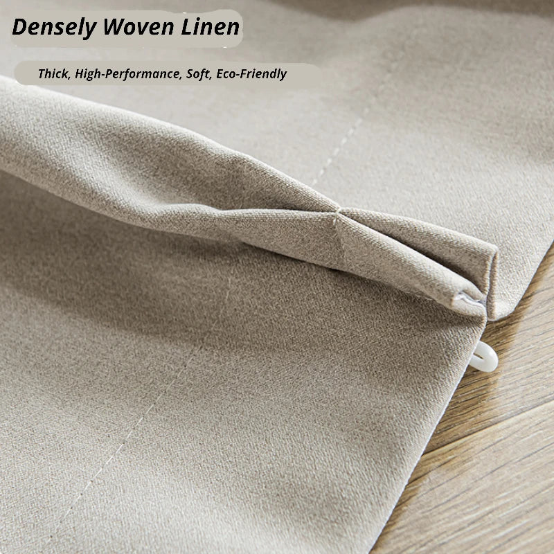 不要な光を遮断し、寝室に穏やかな雰囲気を作り出す90%遮光のリネンカーテンで、安らかな眠りをお楽しみください。