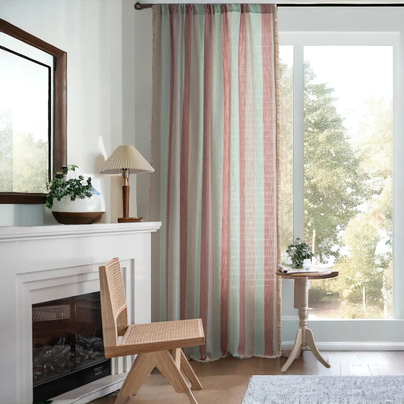 • デザイン: クリーム、スカイブルー、ピンクのカラーブロックカーテン、アイボリーのタッセル付き