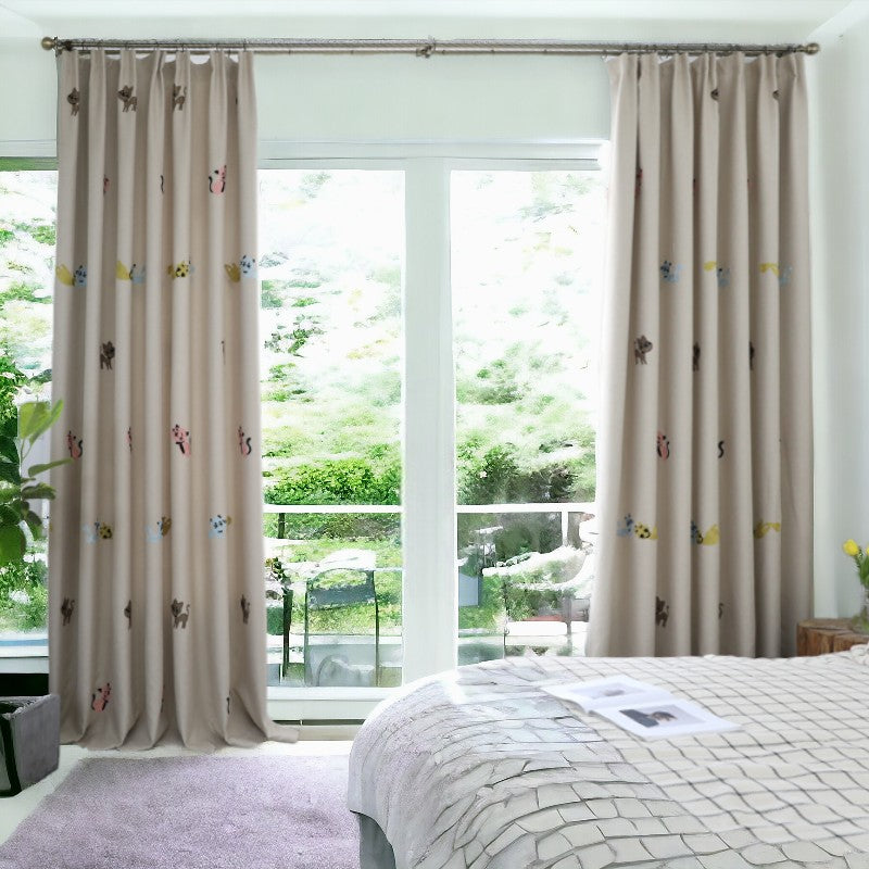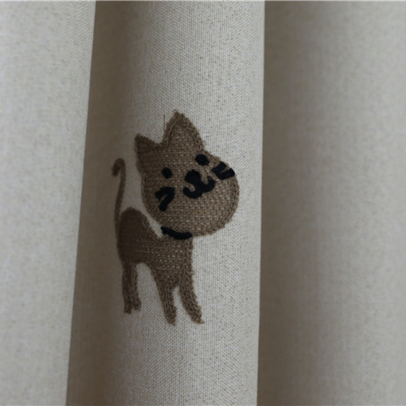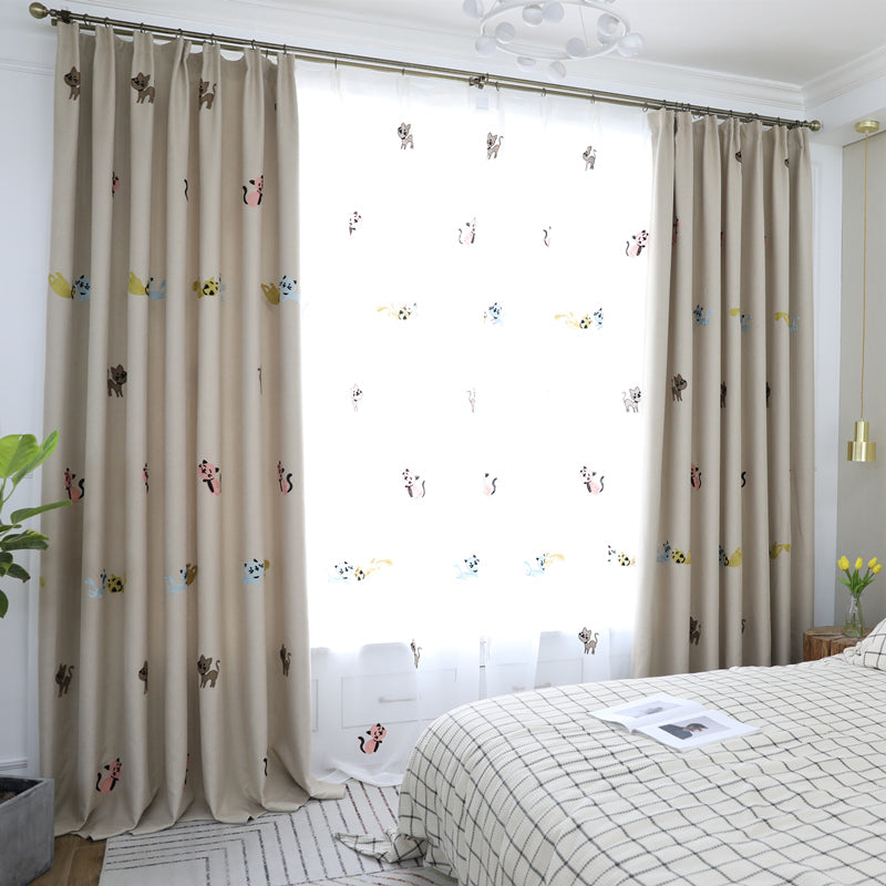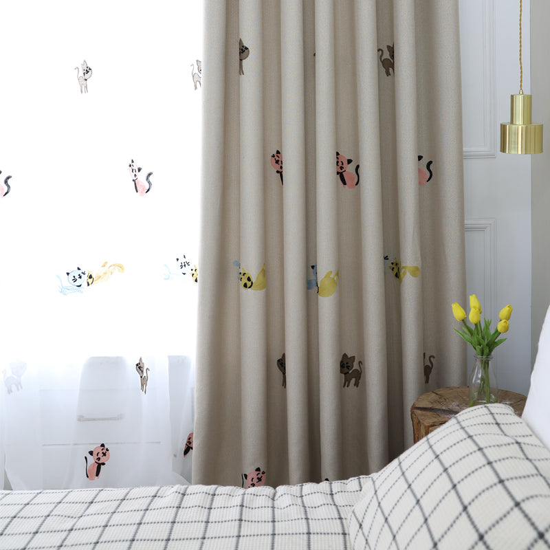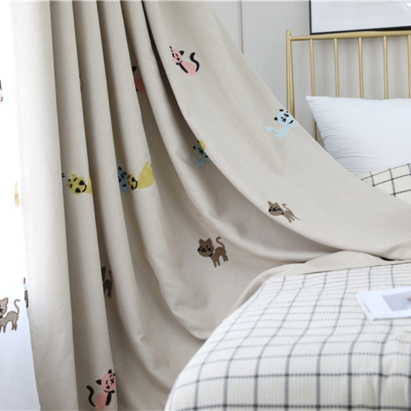 • Produto: Cortina personalizada Aaliyah Cream Blackout com estampa de gatos a tricotar