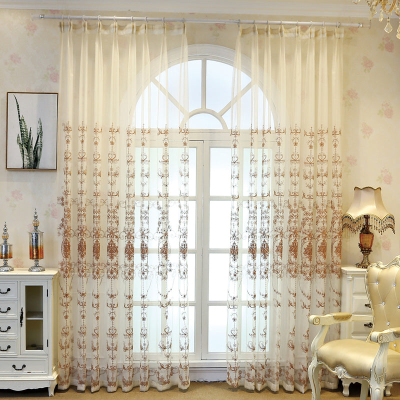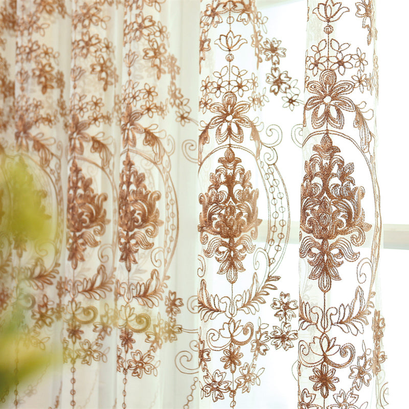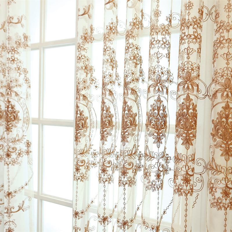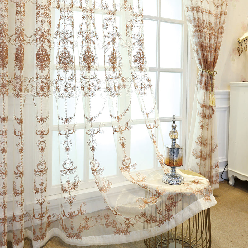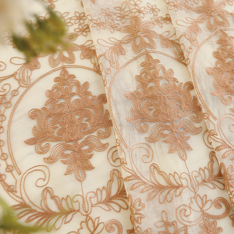 A sua delicada aplicação de renda com flores e folhas castanhas adiciona um toque encantador e romântico, criando um ponto focal cativante em qualquer divisão.