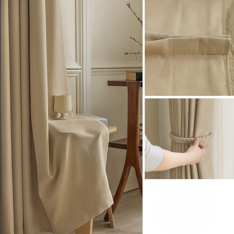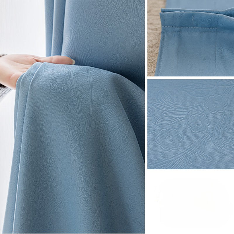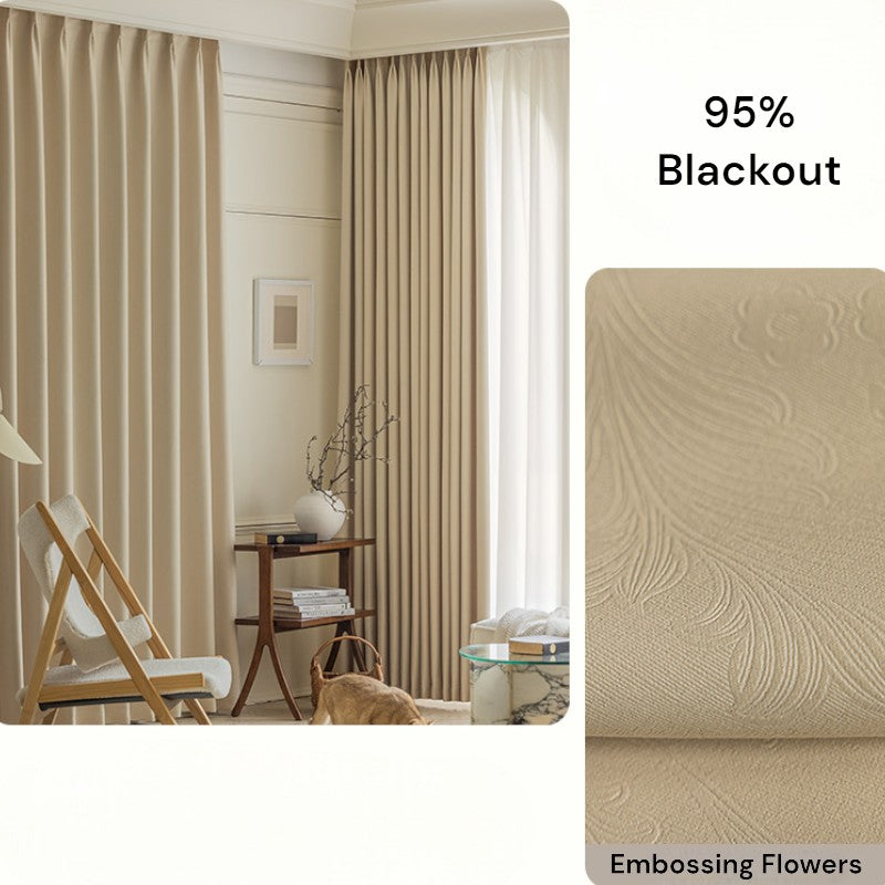 Esta cortina apresenta uma deslumbrante estampa floral em relevo. Esta estampa única adiciona profundidade, textura e um toque de elegância às suas cortinas.